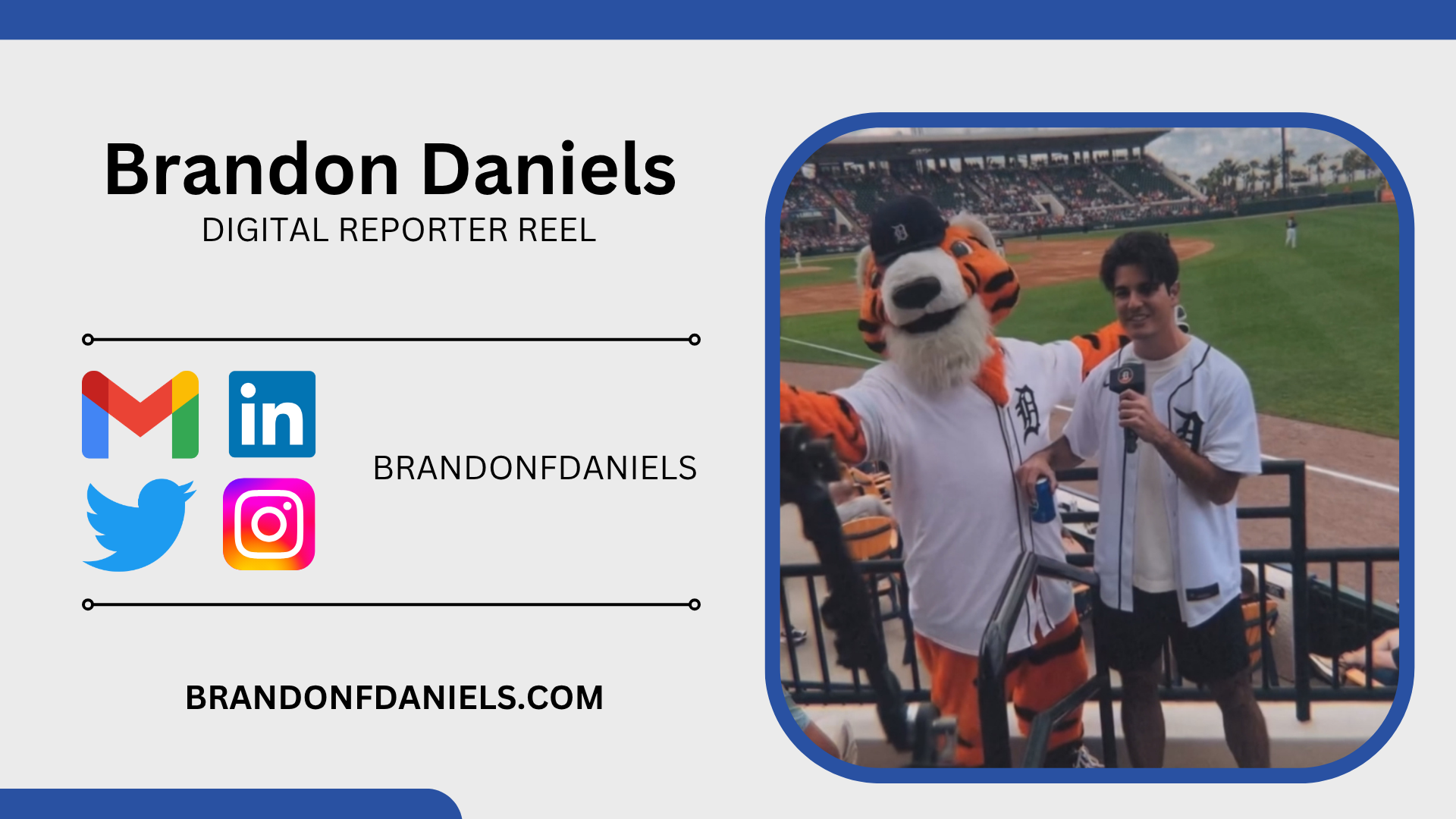 BRANDON DANIELS A ONE-MAN FULL SERVICE SHOP FOR THE MEDIA INDUSTRY. Reels View Work Digital Reel Anchor/Reporter Reel Features Reel Videographer Reel